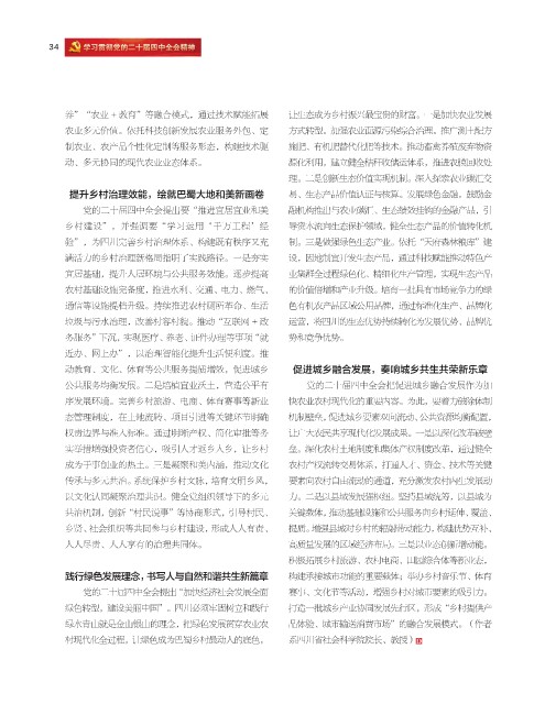 绿色转型,建设美丽中国”。四川必须牢固树立和践行 打造一批城乡产业协同发展先行区,形成“乡村提供产