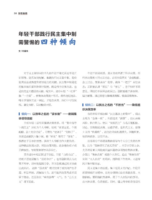 达成共识。这种“强决策”模式使班子成员间产生矛 民主是集中的前提,集中是民主的归宿。年轻干