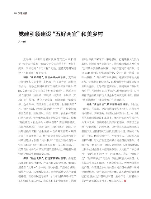 坚持以“党建 +”为主线,推动农旅、产旅融合发展, 题治理,探索建立农村党员在乡村治理中发挥作用考