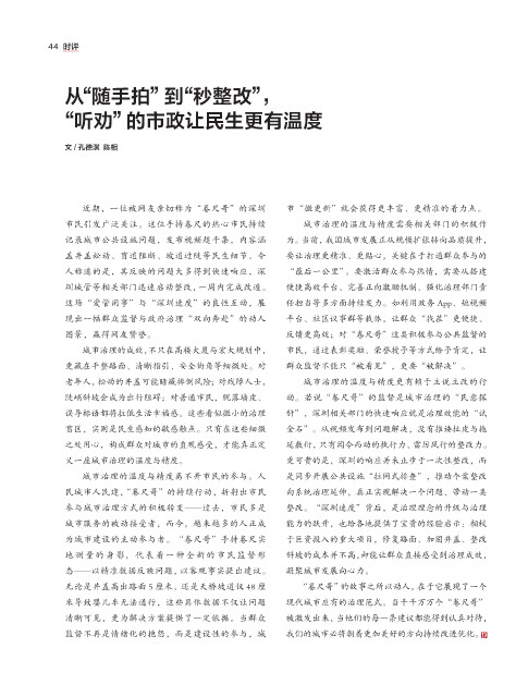 参与城市治理方式的积极转变——过去,市民多是 整改。“深圳速度”背后,是治理理念的升级与治理
