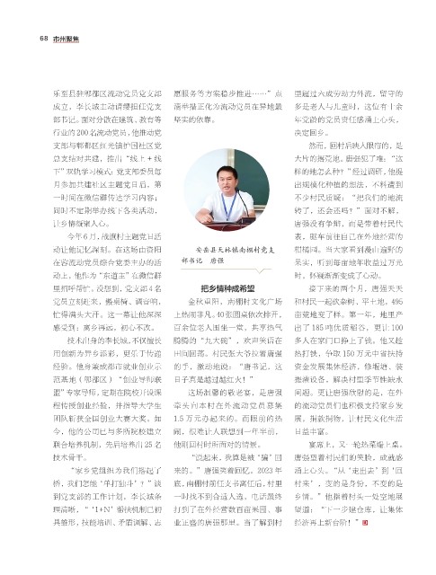 里招呼帮忙。没想到,党支部 4 名 把乡情种成希望 接下来的两个月,唐强天天