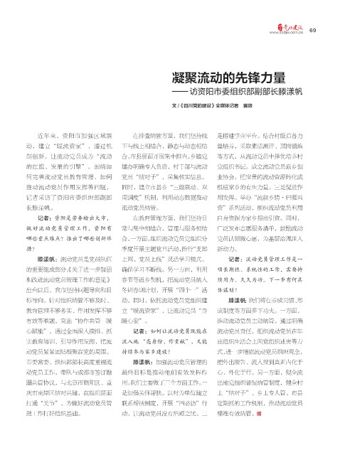 心赋能”,通过全面深入摸排、抓 记者:如何让流动党员既能在 流动党员责任,组织流动党员在年