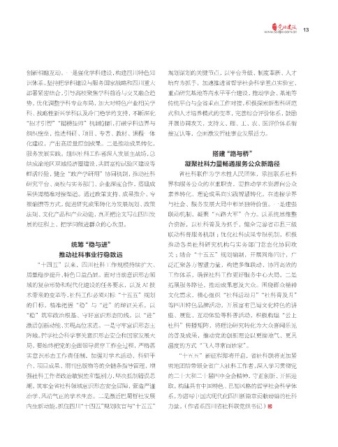 治学、风清气正的学术生态。二是激活巴蜀哲社发展 系,为谱写中国式现代化四川新篇章贡献磅礴的社科