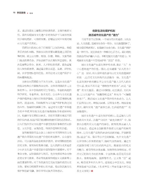 传,最终实现城市文化遗产在有效保护下与城市发展 激活城市文化遗产的“潜力”