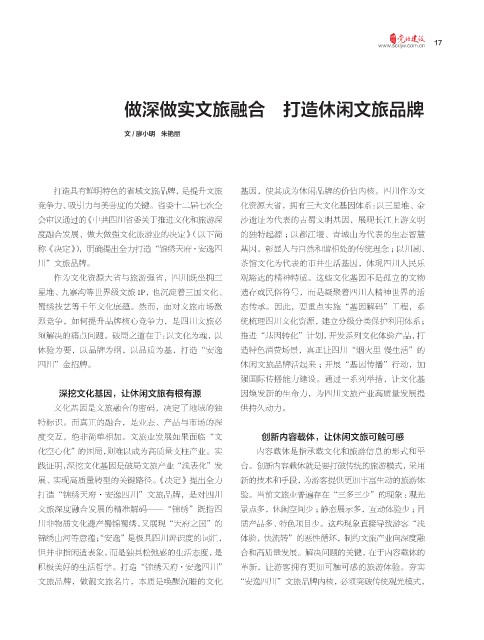 四川”金招牌。 休闲文旅品牌活起来 ;开展“基因传播”行动,加