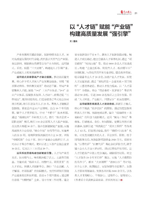运用链式思维擘画产才融合版图。推动高质量发 培养储备专业人才 20 余名,加速产业人才发展。拓宽