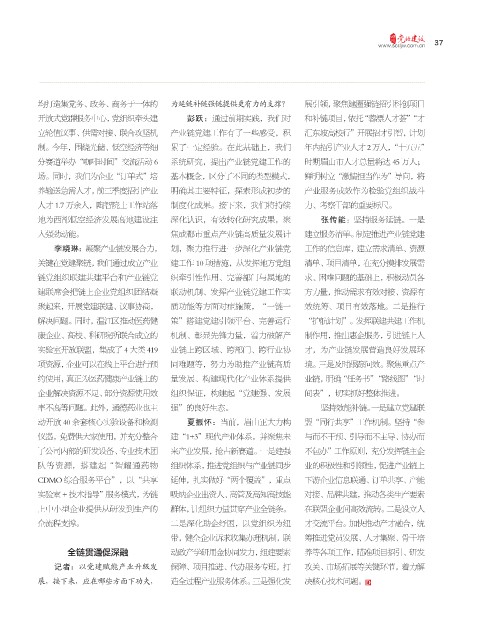 全流程支撑。 二是深化助企纾困,以党组织为纽 才交流平台。加快推动产才融合,统