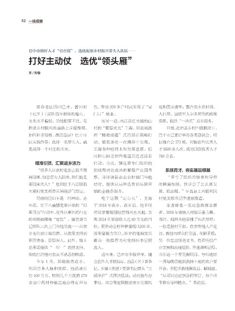 以实践作答:选好一名带头人,就 动。镇党委在一次摸排中发现, 目推介会 173 场,对接在外优秀人