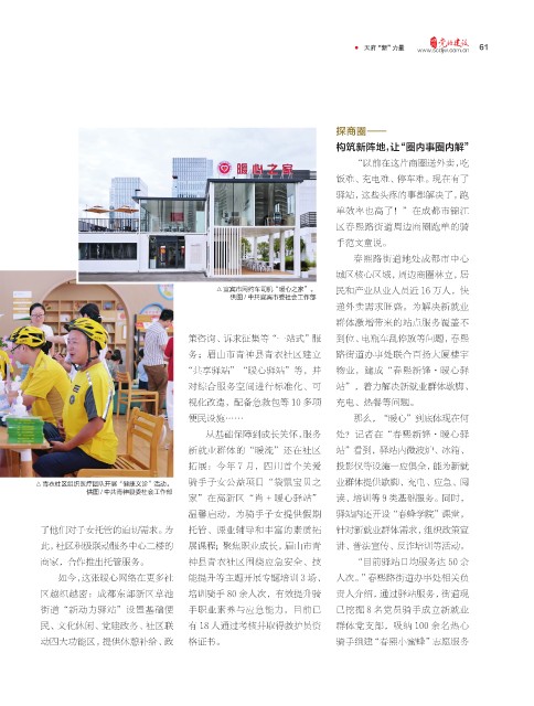 商家,合作推出托管服务。 神县青衣社区围绕应急安全、技 “目前驿站日均服务达 50 余