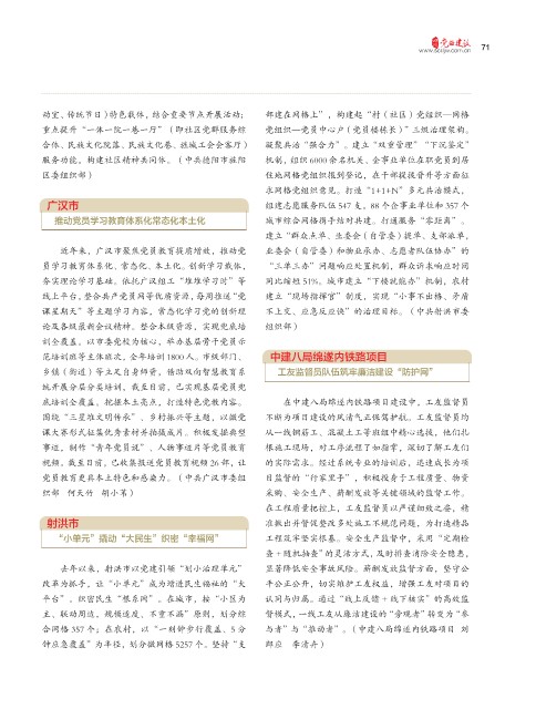 合网格 357 个;在农村,以“一刻钟步行覆盖、5 分 与者”与“推动者”。(中建八局绵遂内铁路项目刘