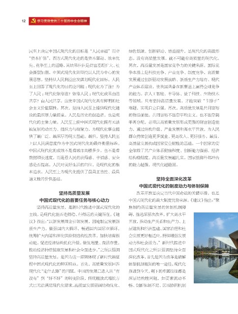 “资本扩张”。西方式现代化走的是资本驱动、效率优 态。没有高质量发展,就不可能有高质量的现代化。
