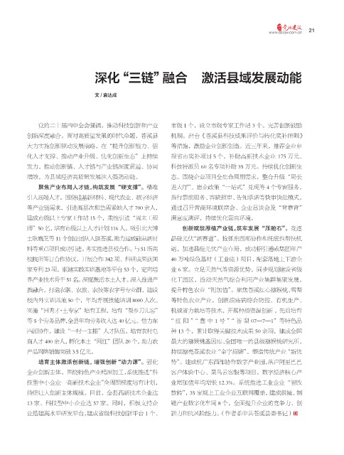 业搭建高水平研发平台,建成省级科技创新平台 1 个、 新力和抗风险能力。(作者系中共苍溪县委书记)