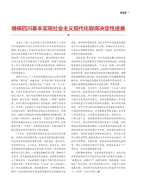 国作出“两步走”战略安排,其中到 2035 年基本实现 略之举,对四川现代化建设具有重要牵引带动作用,必