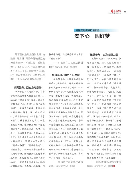 管”。如何让这些“流动的劳动 北街社区党委书记 张莉萍 的“服务暖心、赋能聚力、激励