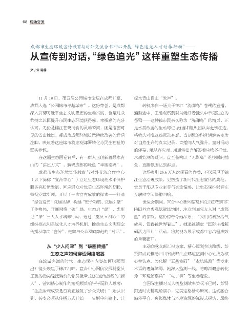 工作格局,开展网络“碳”绿、生态启“绿”、光影 陪同外宾参观低碳场馆时,注意到国际友人对“成都