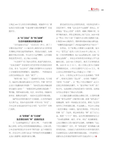 员,她始终以解决群众需求为工作导向。带着“研学怎 守护的“行动者”,让“雪山下的公园城市”成为生