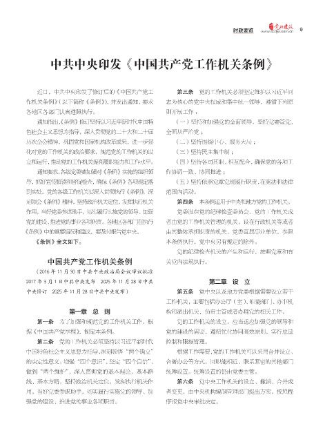 近日,中共中央印发了修订后的《中国共产党工 第三条 党的工作机关必须坚定维护以习近平同