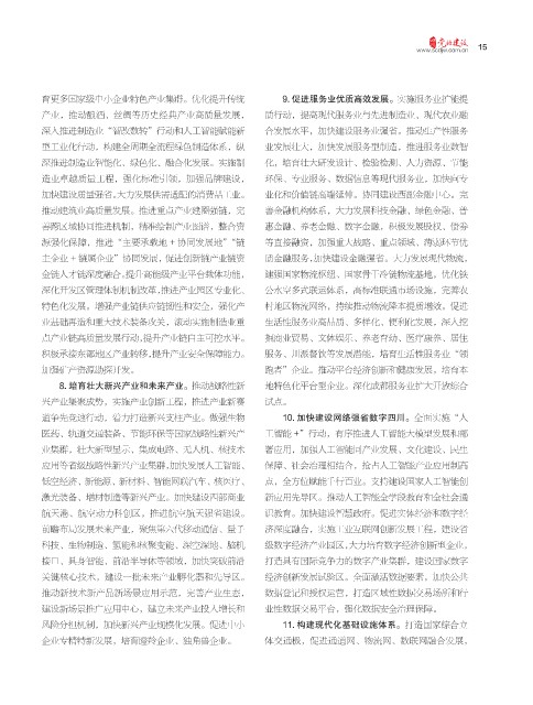 育更多国家级中小企业特色产业集群。优化提升传统 9. 促进服务业优质高效发展。实施服务业扩能提