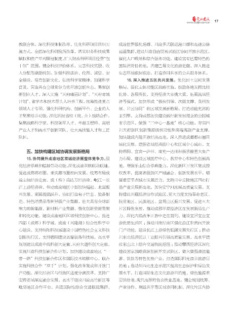 15.协同提升成渝地区双城经济圈整体竞争力。 强 力布局,建设区域医疗中心、教育中心和特色创新高