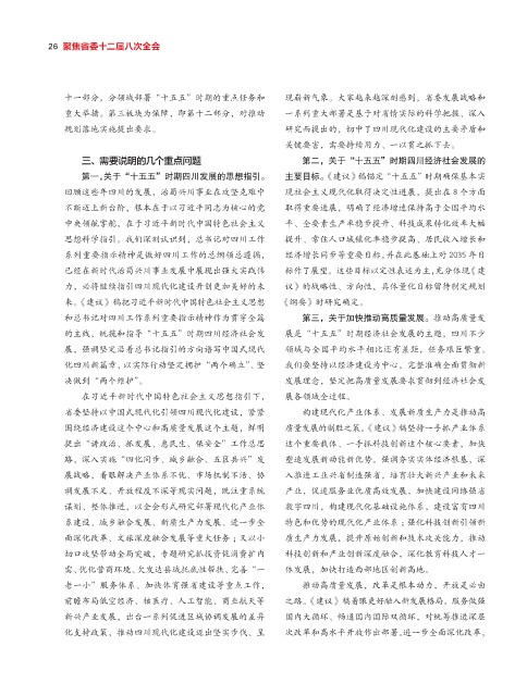 三、需要说明的几个重点问题 第二,关于“十五五”时期四川经济社会发展的