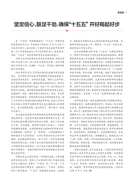 的一次十分重要的会议,对于我们坚定信心、奋发有为, 会议准确把握 2026 年在“十五五”时期的重要地