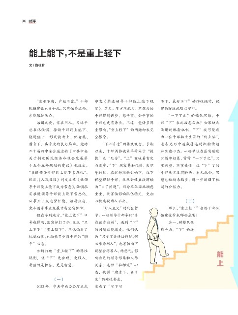 “推进领导干部能上能下常态化”。 等挂钩。在这种观念影响下,往下 干部感觉没有盼头、再无机会,思