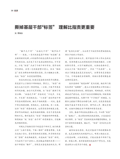 考评导向的偏差、权责机制的模糊、为实干者兜底保 当然,基层干部自身也需摆正心态。不必因“标签”
