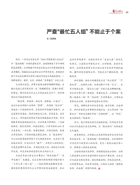 严查“最忙五人组”不能止于个案