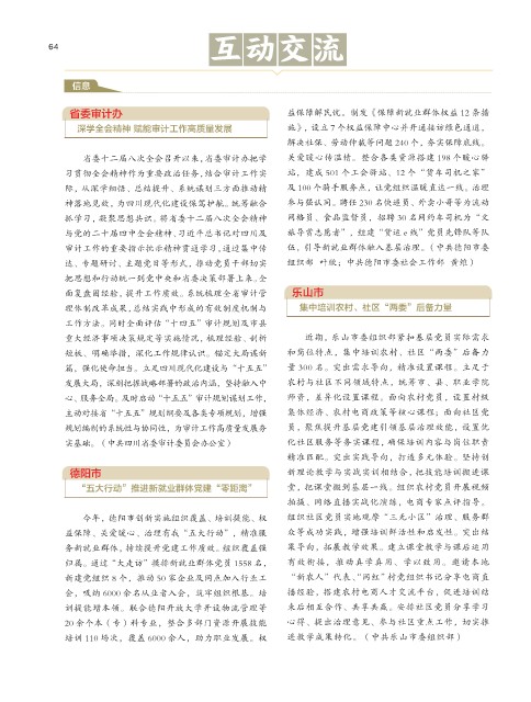 审计工作的重要指示批示精神贯通学习,通过集中传 伍,引导新就业群体融入基层治理。(中共德阳市委