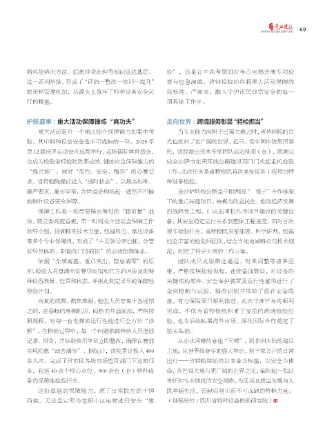 重大活动是对一个地区综合保障能力的集中考 当专业能力深耕于巴蜀大地之时, 省特检院的目