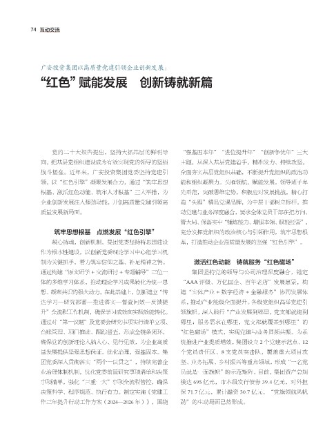 凝心铸魂,创新机制。集团党委坚持将思想建设 基,打造推动企业高质量发展的坚强“红色引擎”。
