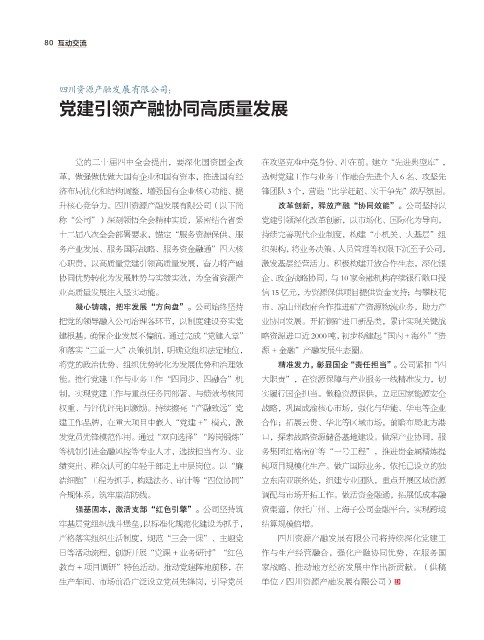 升核心竞争力。四川资源产融发展有限公司(以下简 改革创新,释放产融“协同效能”。公司坚持以