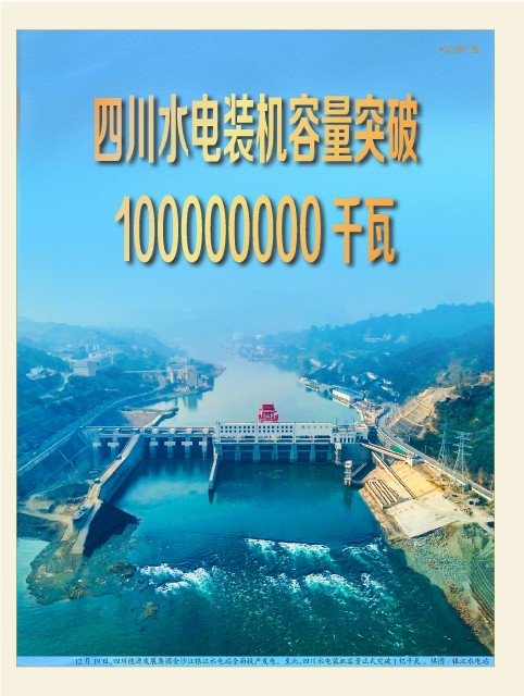 ● 公益广告 12 月 19 日,四川能源发展集团金沙江银江水电站全面投产发电。至此,四川水电装机容量正式突破 1 亿千瓦 。供图 / 银江水电站