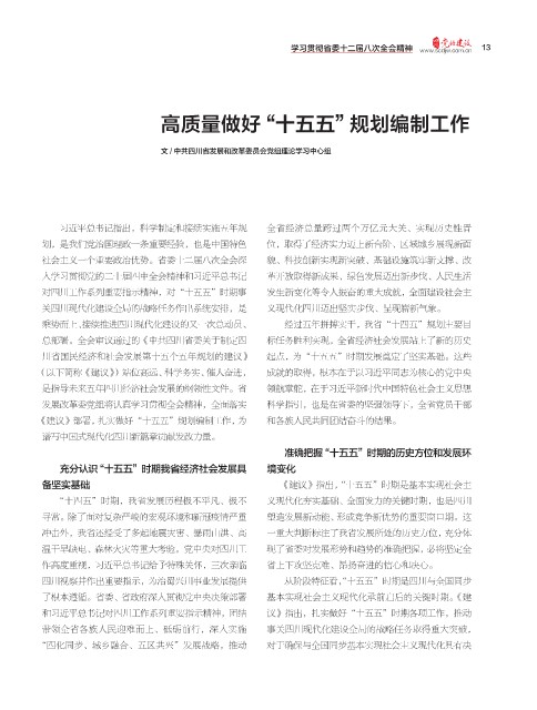 总部署。全会审议通过的《中共四川省委关于制定四 标任务胜利实现,全省经济社会发展站上了新的历史