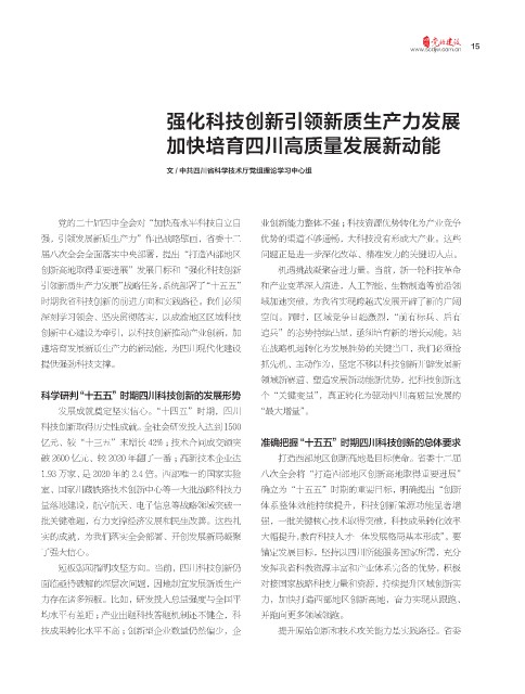 短板弱项指明攻坚方向。当前,四川科技创新仍 发挥我省科教资源丰富和产业体系完备的优势,积极
