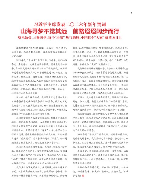 习近平主席发表二〇二六年新年贺词