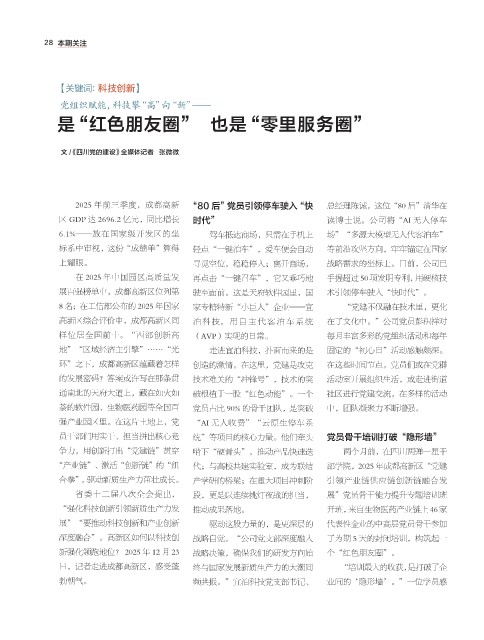 “产业链”、激活“创新链”的“组 代;与高校共建实验室,成为联结 部学院,2025 年成都高新区“党建