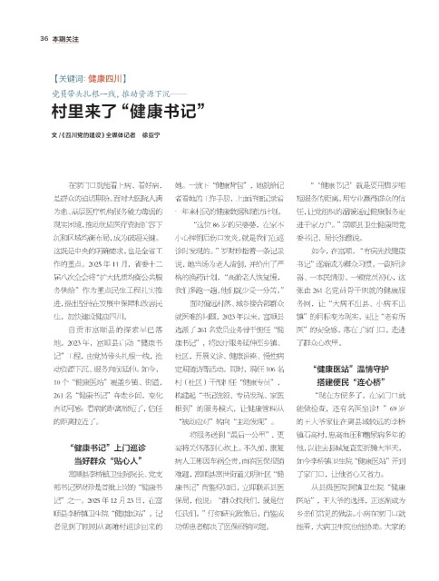 地。2023 年,富顺县启动“健康书 康书记”,将医疗服务延伸至乡镇、 了群众心坎里。