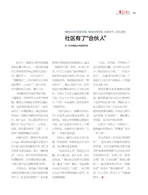 题,峨眉山市委组织部坚持党建引 为“合伙”事业提供了坚实的组织 开展多样化社商合作:桑园社区与