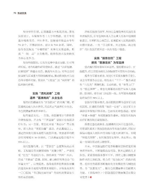 指导各医院走“专精特新”差异化发展道路,形 胜”的红色医疗铁军在一次次考验中锻造。
