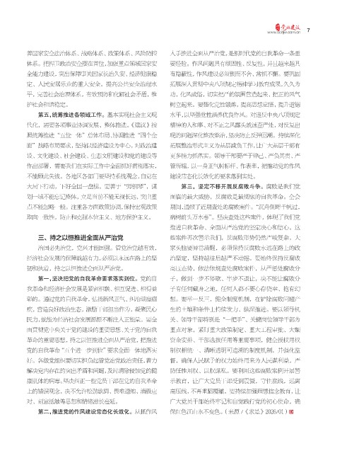 三、持之以恒推进全面从严治党 些案件再次警示我们,反腐败形势仍然严峻复杂,大