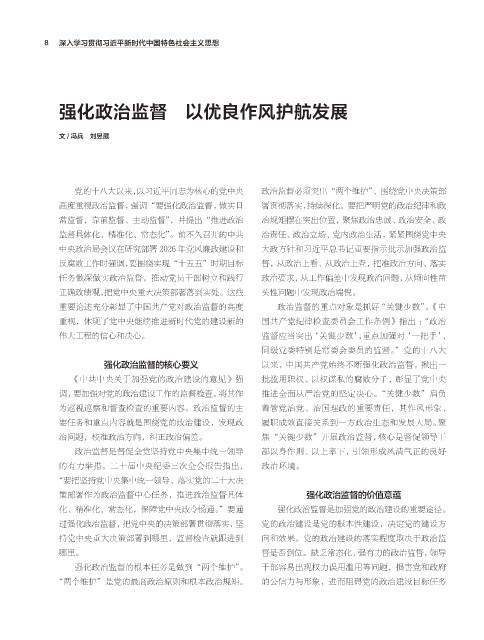 化、精准化、常态化,保障党中央政令畅通。”要通 强化政治监督是加强党的政治建设的重要途径。