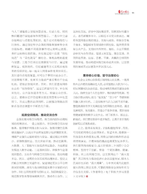 环节,形成完整的治理闭环,以便推动网络治理 利融入数字时代。二是在秩序与活力之间寻求平衡,