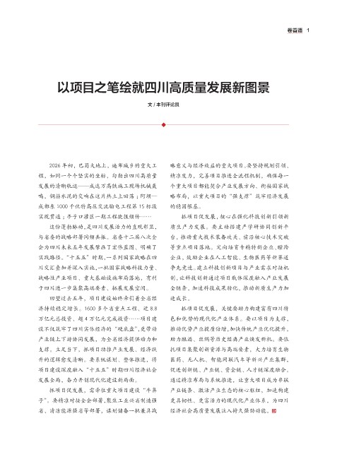 2026 年初,巴蜀大地上,遍布城乡的重大工 略意义与经济效益的重大项目。要坚持规划引领、