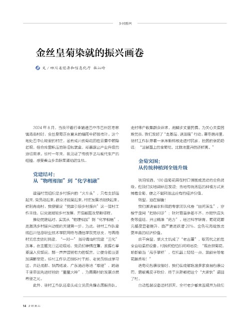 建强村党组织是乡村振兴的“火车头”,只有支部强 缚着金菊,使之不能释放出应有的经济价值。
