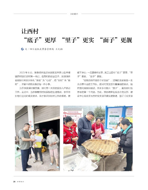 2023 年 8 月,我受组织选派来到宜宾市屏山县书楼 暗下决心:一定要做些实事,真正让西村“底子”更厚、“里