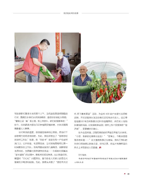 “家长里短”的过程中,我和村民愈发熟悉,也让我意识到, 驻村信息: