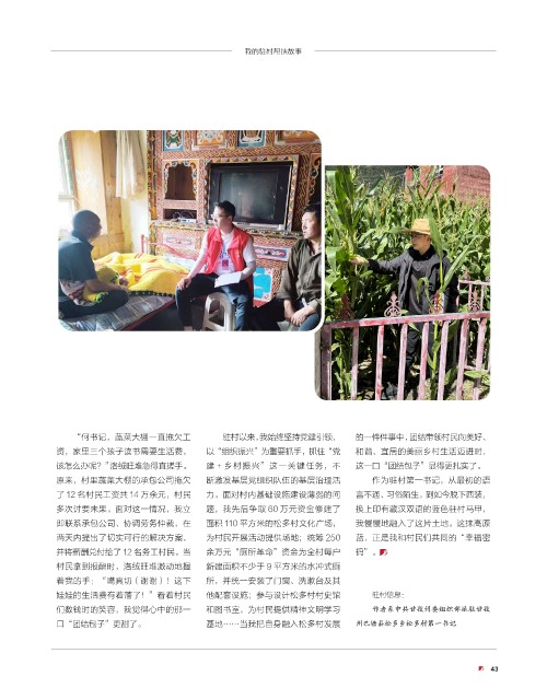 “何书记,蔬菜大棚一直拖欠工 驻村以来,我始终坚持党建引领, 的一件件事中,团结带领村民向美好、