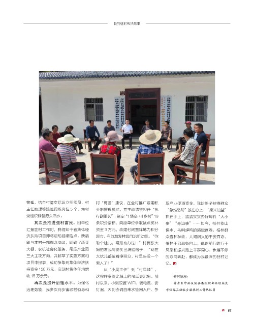 汇报驻村工作时,我得知中省集体经 资金 3 万元,改建村闲置阵地为积分 傍水、鸟叫蝉鸣的旖旎画卷,柏林群