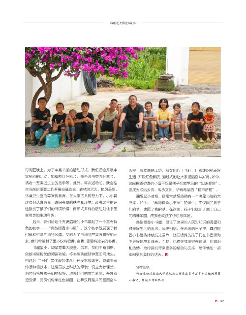 素。我们希望村子里不仅有橙香、蜜香,更要有浓浓的书香。 下更好地茁壮成长。而我,也将继续坚守在这里,用知识